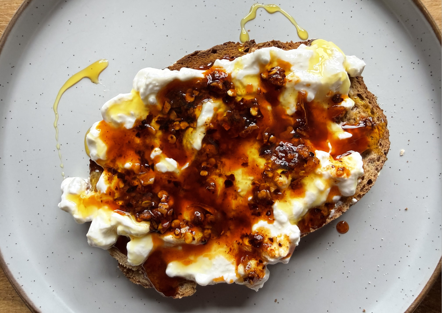 My on toast series. Hot Honey Chilli Crunch Cottage Cheese Toast. A quick sweet-spicy toast that works brilliantly for breakfast or a snack.